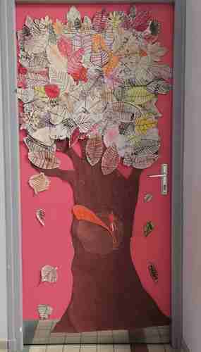 Même au niveau de la classe de grande section et de CP sur la porte de laquelle un arbre gigantesque a poussé.