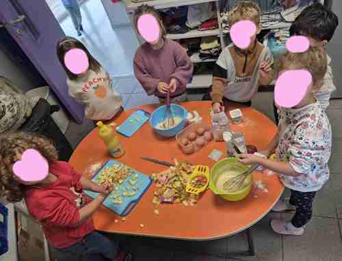 maternelle prennent un moment chaque mois pour cuisiner. C'est