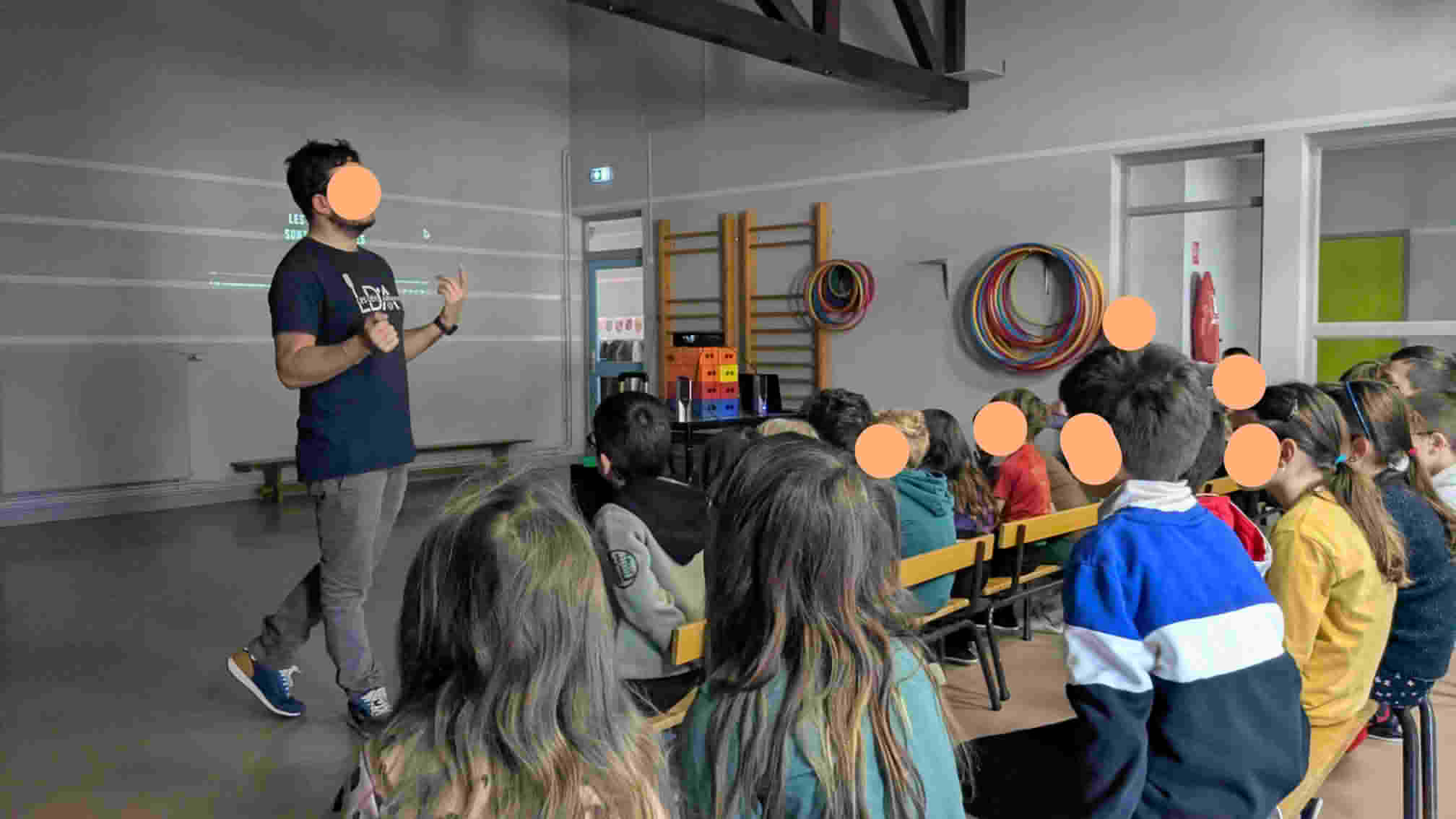 Avant sa venue, les élèves de cycles 2 et 3 de l’école ont fait connaissance avec lui en visitant son site (https://www.lesdefisdarmand.fr/ ) et en visionnant quelques unes de ses vidéos.