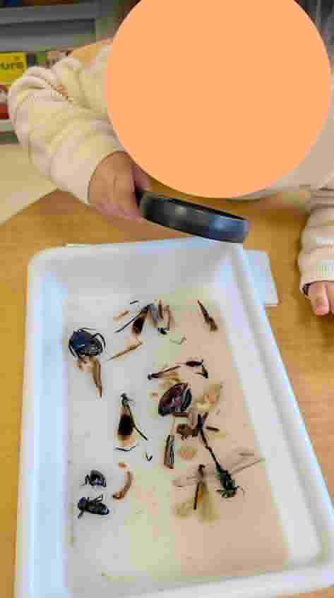 Dans un deuxième temps, chaque enfant a utilisé la loupe à main pour observer de « petites bêtes » qui, elles-aussi, nous entourent au quotidien.