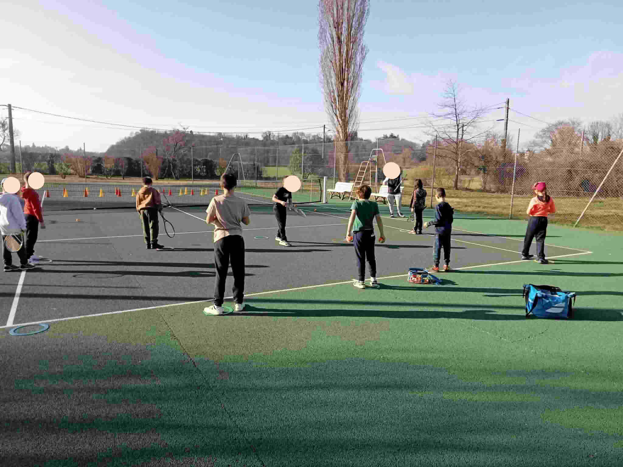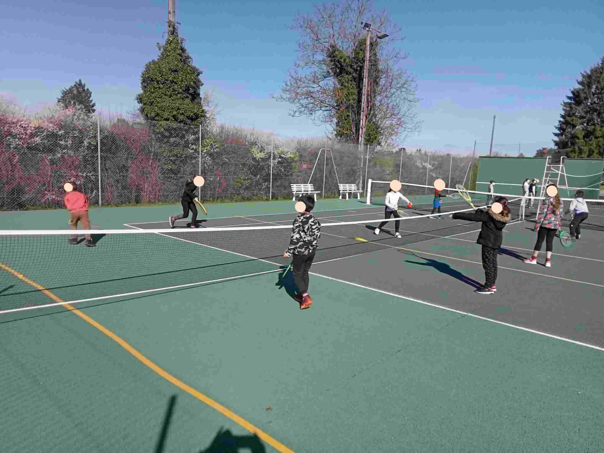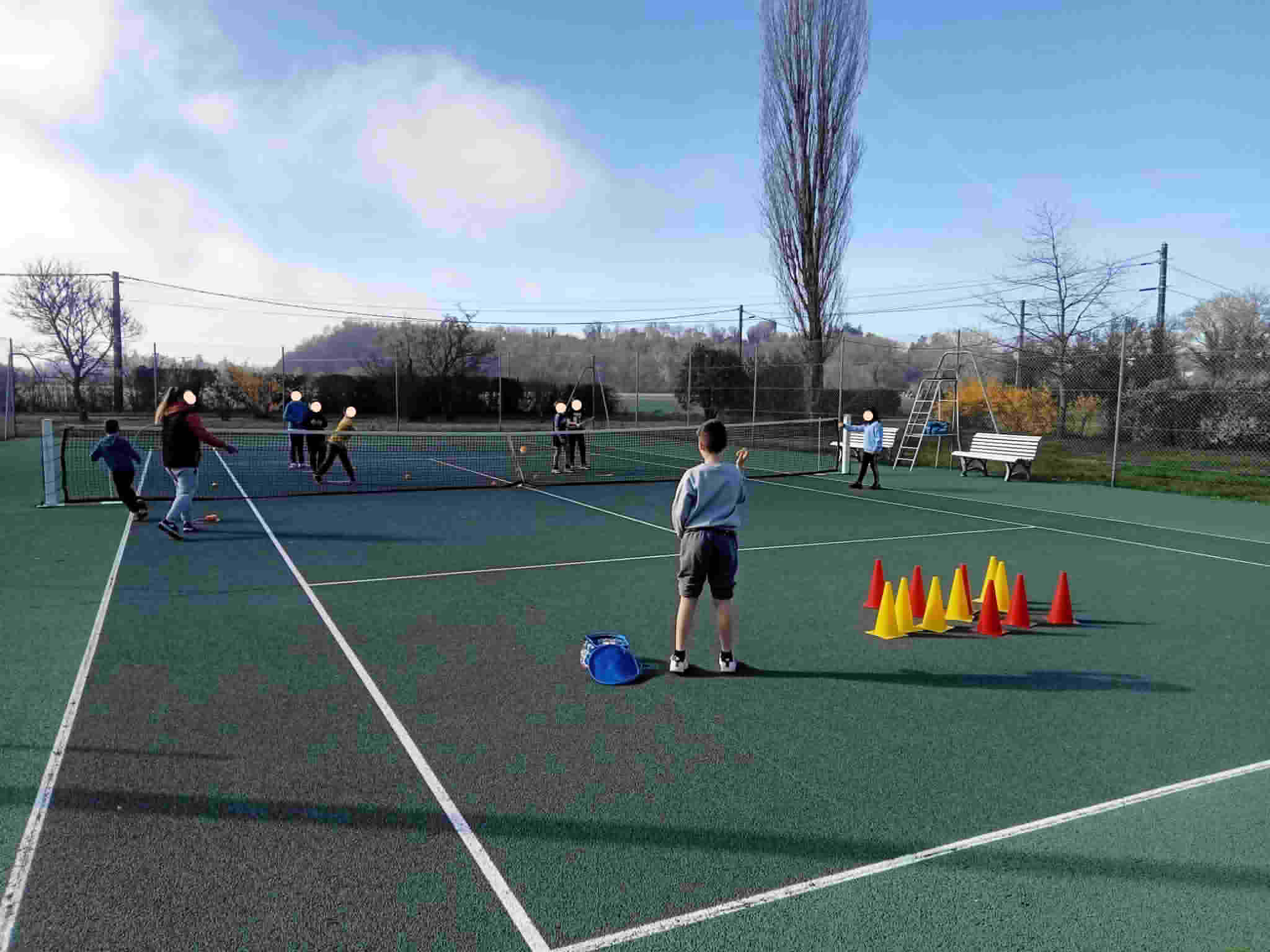 Deux groupes de 27 et 25 élèves se rendent le mardi ou le jeudi matin suivant la météo sur les deux courts communaux.