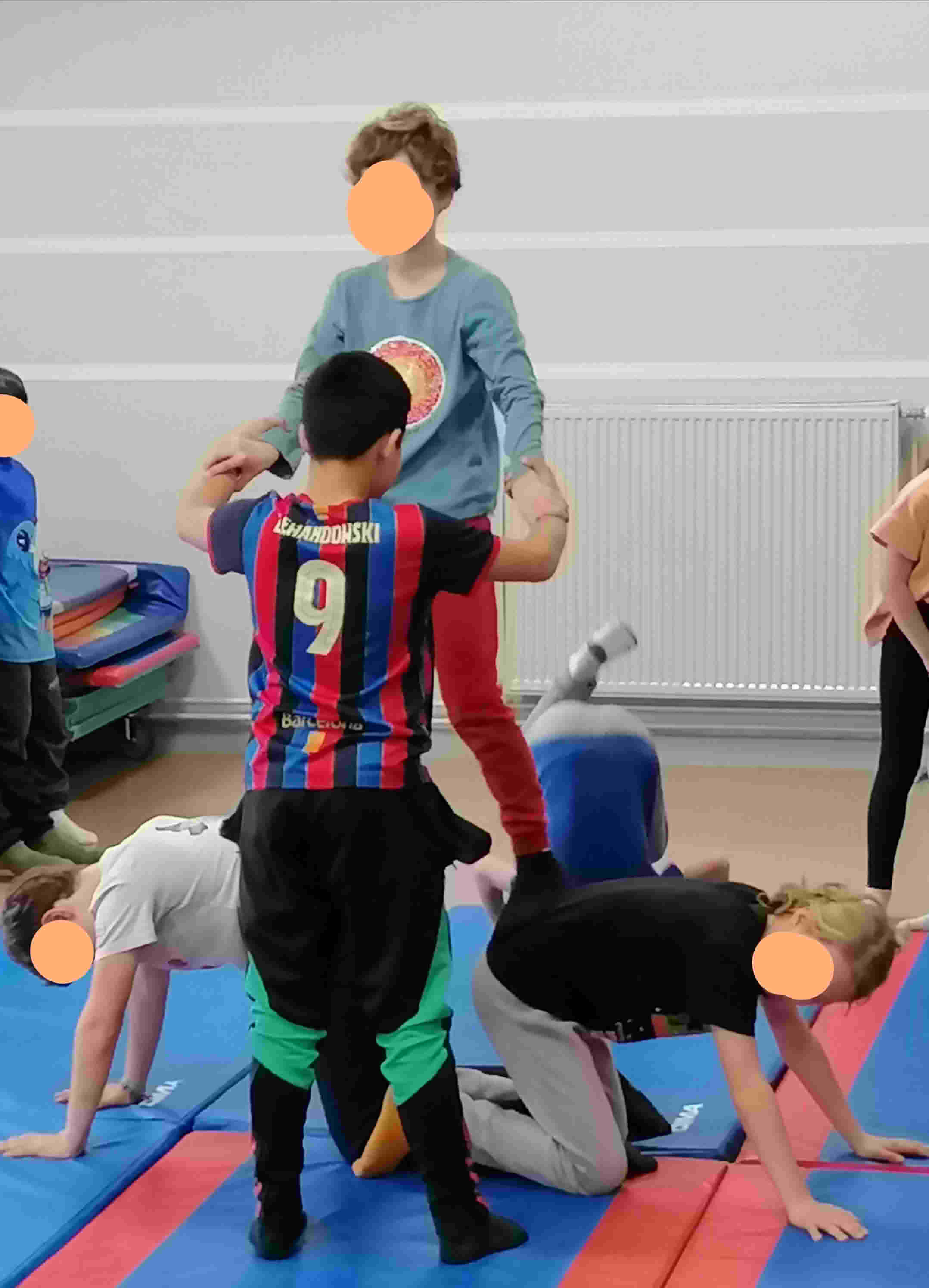 Le vendredi 6 février en fin de journée, les élèves de la classe de madame Garin ont invité tous les élèves de l’école à une représentation de fin de cycle « Acrosport ».